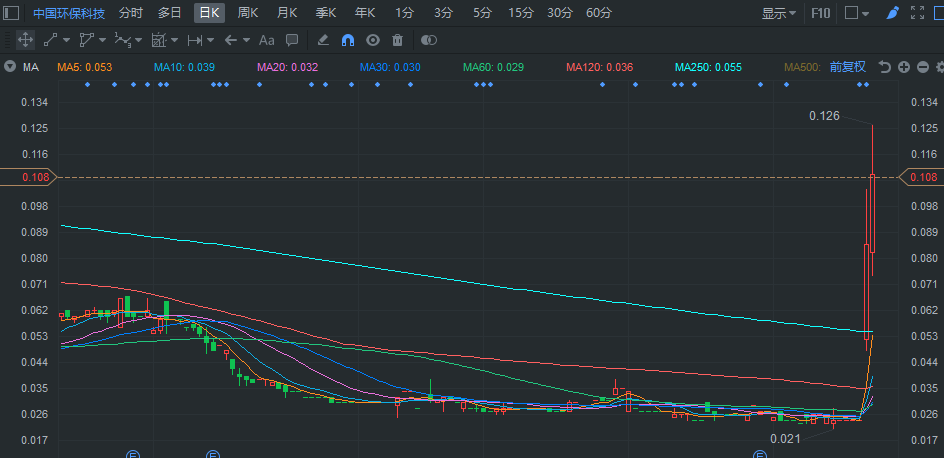 格隆汇9月23日丨细价股中国环保科技(00646.HK)此前交易平淡,受公司引入潜在投资者消息影响,两日放量暴涨超300%。现涨27.06%,报0.108港元,暂成交4886万港元,最新总市值3.94亿港元。