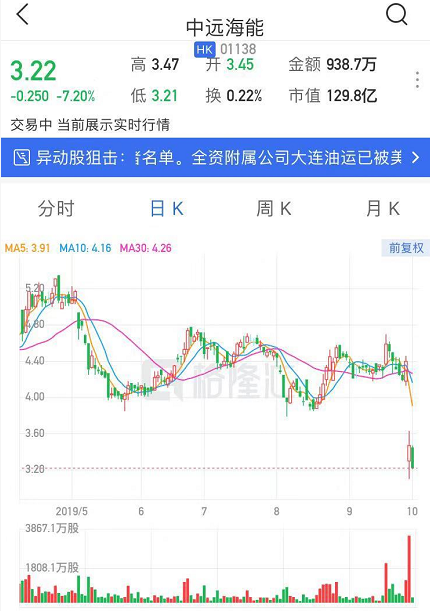 港股异动 | 附属被美列入特别指认国民名单持续发酵 中远海能续跌逾7%