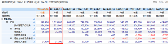 据最新财报披露,2019年上半年,嘉信理财总营收为54.04亿美元,同比增长10.65%,扣非归母净利润为19.63亿美元,同比增长12.17%。