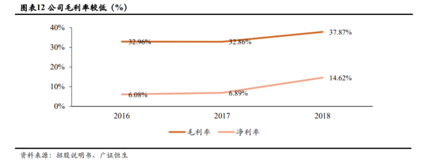 而综合其财报来看,其毛利率不高的原因主要是受业务扩张、研发投入加码导致管理费用率、研发费用率逐年攀升影响。2016年至2018年,该公司管理费用率分别为13.21%、13.62%、14.29%;同期研发费用率也逐步攀升,分别为3.79%、4.06%、6.28%