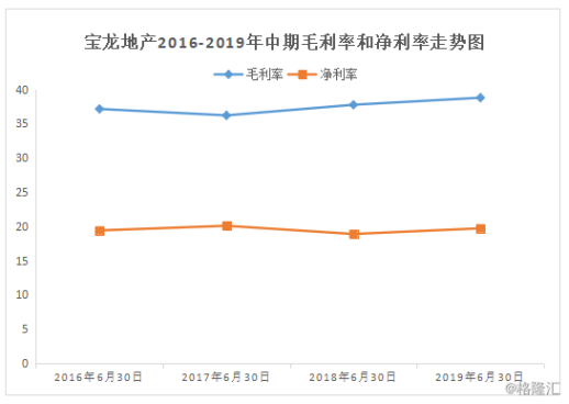 从盈利能力上看,宝龙地产2019年上半年录得毛利47.53亿元,毛利率为38.8%;净利润24.48亿元,较去年同期上升37.2%,净利率约为20.0%。