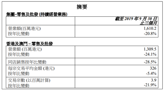 诚然,作为香港零售龙头,据2019财年(截至3月31日)报告显示,集团有近85%的销售额来自香港,其业绩受到香港市场的影响程度不言而喻。