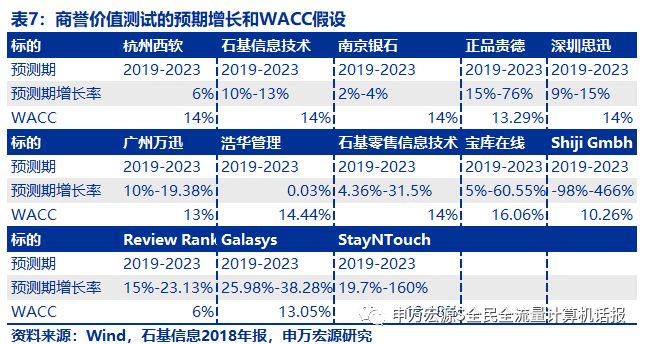 每个子公司的商誉减值测试还披露的预测期增长率、WACC等关键条件,成为支撑计算的重要数据,详见表7。
