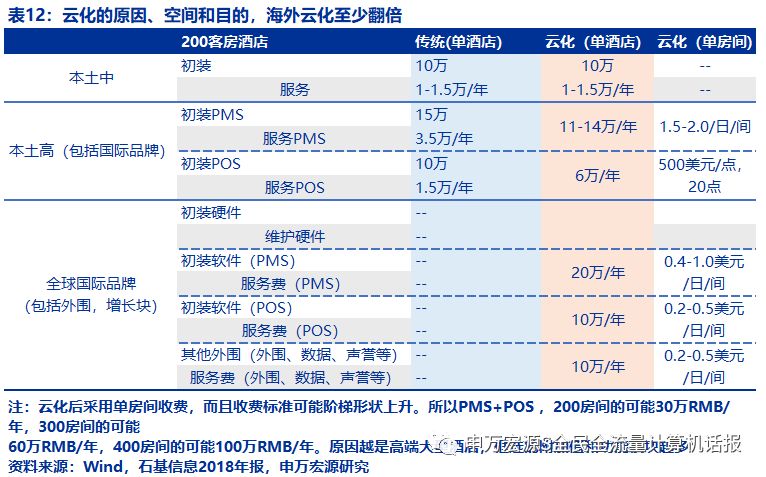 海外全球品牌下一代采用单日单间模式付费,典型的200间酒店的PMS/POS年收费为20万元/年、10万元/年,即3.5万美元/年、1.5万美元/年。