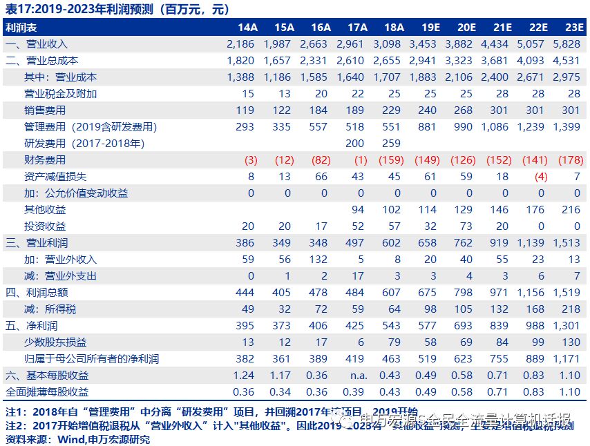 维持2019-2021年利润预测,分别为5.19、6.23、7.55亿元。明细如表17。