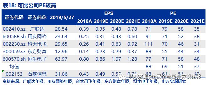 为了比较精确的框定一个估值范围,我们选择了广联达、用友网络、科大讯飞、东方财、恒生电子这五家相对接近的可比公司,都是从事云业务的领先者。虽然有横向合理性,但市盈率都偏高。