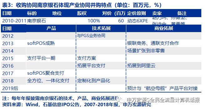 另一个案例是南京银石,2010前、2010-2011、2011-2018分别是独立、收购、产品协同与商业拓展的阶段,且交易对手方是自然人而非PE投资者。2010年7月,公司与赵乃珂、孙勇坚、 张诗中、黄勇四名自然人签署《南京银石计算机系统有限公司股权转让框架协议》时,动态PE仅仅6倍。2012年至今,历次经过产品发展(softPOS成熟并拓展)、技术拓展(支付方案、与PGS业务连接)、商业拓展(到非零售、拓展到阿里云、接入石基当前“航空母舰“产品线)的过程。