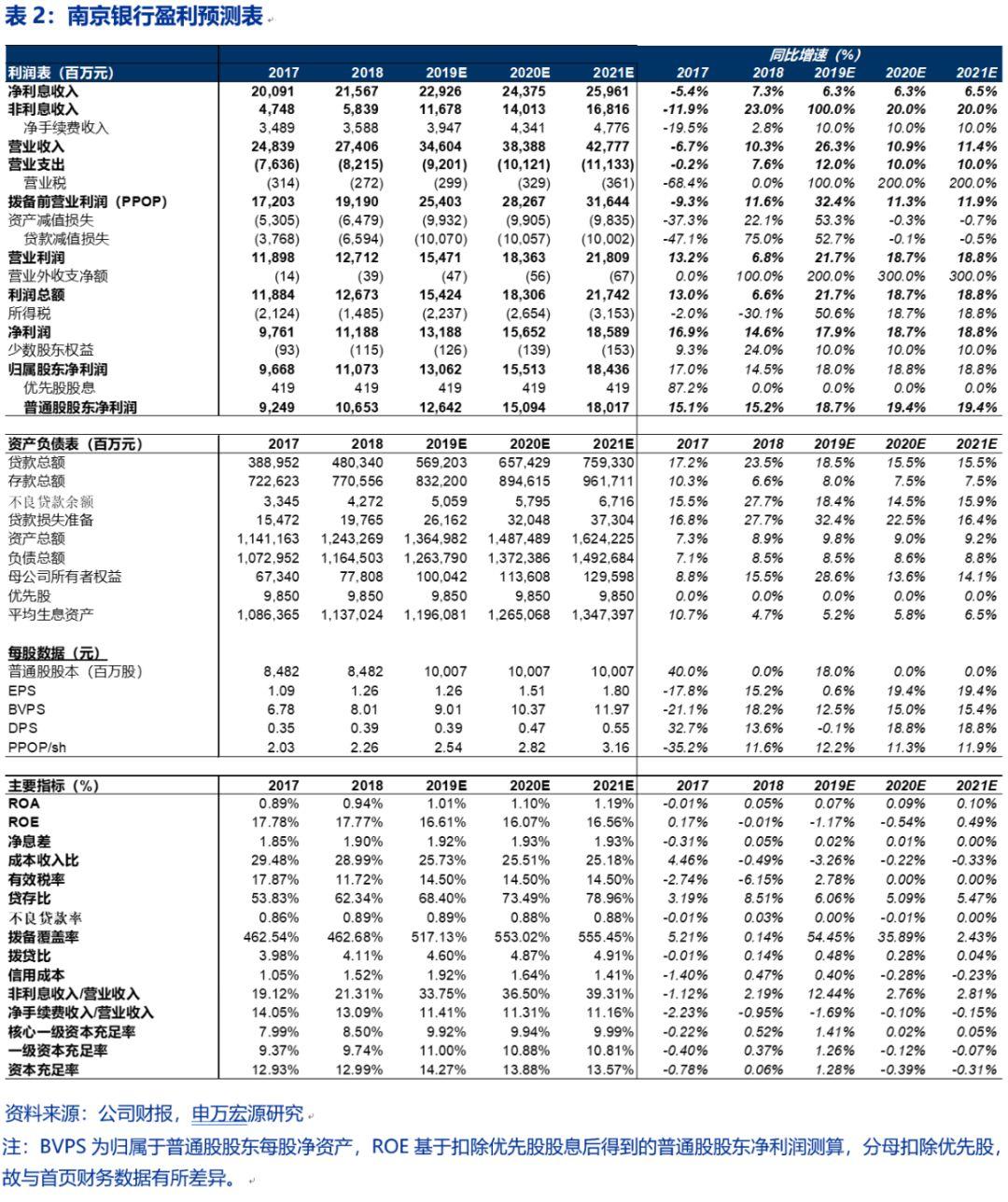 资产调结构、同业负债降成本助力南京银行1H19净息差提升。1H19净息差环比2H18提高5bps至1.94%,根据息差环比变动分析,资产端结构因素和负债端利率因素是两大助攻。1)资产端,南京银行提高高收益率资产贷款的比重、提高零售贷款占比。2Q19贷款同比增长23.6%,占总资产比重创历史新高突破40%。1H19新增贷款587亿元,占1H19新增总资产比重为56%。投放结构上零售于对公(含票据贴现)各占一半,而对公贷款则以一般性贷款为主、大力压降票据贴现,截止1H19零售贷款占比已经达到历史最高值29.1%。资产端调结构的同时,贷款定价上行有效抵消了金融市场资产利率的下降,1H19生息资产收益率环比提高9bps至4.85%,其中1H19贷款收益率环比2H18提升18bps至5.81%,对公和零售贷款分别环比2H18提高6和46bps至5.43%和6.76%。2)受益于当前“资产紧-负债松”的格局,1H19同业负债、应付债券利率明显下行,环比2H18下降35和52bps至2.54%和3.77%。我们亦发现,与其他披露中报的银行类似,1H19南京银行存款成本上行幅度明显收窄,其中对公定期存款成本环比2H18下降2bps至3.20%。由于南京银行日均存款中69%来自对公定期,因此我们预计下半年净息差负债端存款利率因素的负面贡献将进一步减少,缓解负债成本稳定息差。