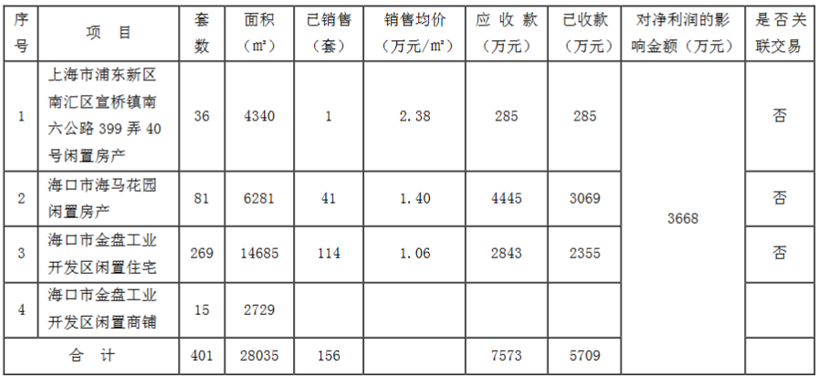格隆汇9月23日丨*ST海马(000572.SZ)公布,为优化和盘活存量资产,公司董事会十届七次和十届九次会议分别审议通过了《关于公司拟出售部分闲置房产的议案》,公司拟通过招标和/或委托中介机构按照市场价格在二手房交易市场挂出等方式公开出售位于上海市浦东新区南汇区宣桥镇南六公路399弄40号、海南省海口市龙华区金牛路2-1号海马花园、海口市金盘工业开发区创业新村及金盘工业区金盘大道旁的部分闲置房产。最终处置价格以成交价为准。