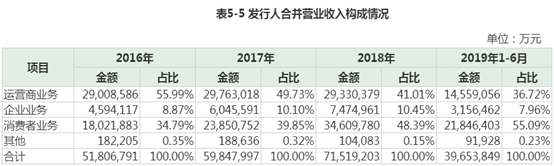 2016-2018年及2019年上半年,公司(华为)合并口径实现营业收入5180.68亿元、5984.80亿元、7151.92亿元和3965.38亿元,同比分别增长31.58%、15.52%、19.50%和22.86%,2016-2018年年均复合增长率达17.49%