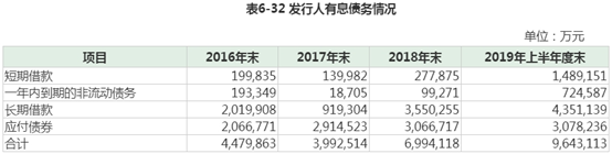 募集说明书显示,近三年及2019年上半年末,华为有息债务余额分别为447.99亿元、399.25亿元、699.41亿元和964.31亿元