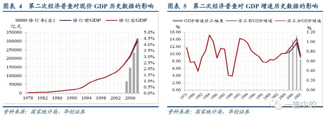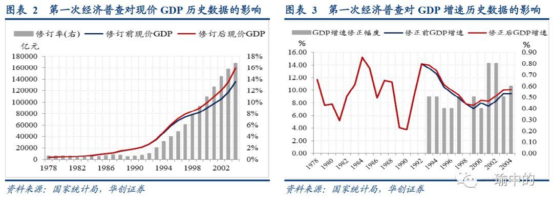 第一次经济普查:1978-2004年的现价GDP1994-2004年的实际GDP增速数据作了修正,所有数据都是调高,没有调低。