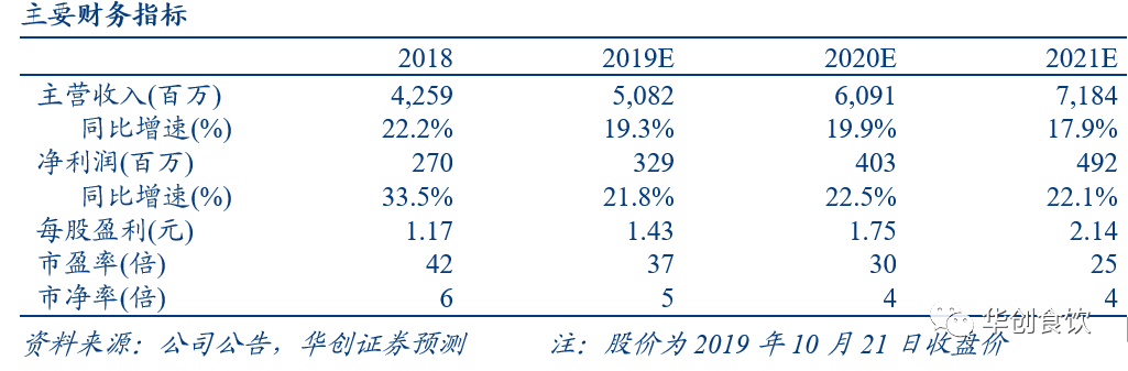 维持目标价60元及强推评级。对于年初以来市场一直关注的成本压力,我们一直强调,公司已证明良好的应对能力,应对措施多样,包括积极调整产品结构及实施产品提价,市场不应过分担忧,更重要的是销地产模式下全国化布局及领先的供应链管理能力带来的规模优势持续显现,我们继续看好龙头竞争优势继续强化,盈利能力保持稳中向好。我们略上调2019-2021年EPS预测至1.43/1.75/2.14元(原预测值为1.40/1.71/2.08元),对应 PE为37/30/25倍,维持目标价60元及“强推”评级。