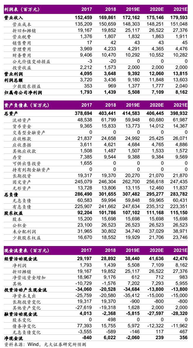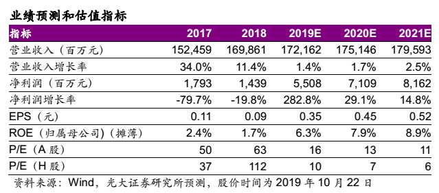 我们维持盈利预测,预计公司2019-2021年的归母净利润分别为55.1、71.1、81.6亿元,EPS分别为0.35、0.45、0.52元。当前股价对应华能国际(A)2019-2021年的PE分别为16、13、11倍,对应华能国际(H)2019-2021年的PE分别为10、7、6倍。公司作为火电龙头,盈利回升趋势确立,当前估值明显处于历史低位,重申华能国际(A)“买入”评级、华能国际(H)“买入”评级。