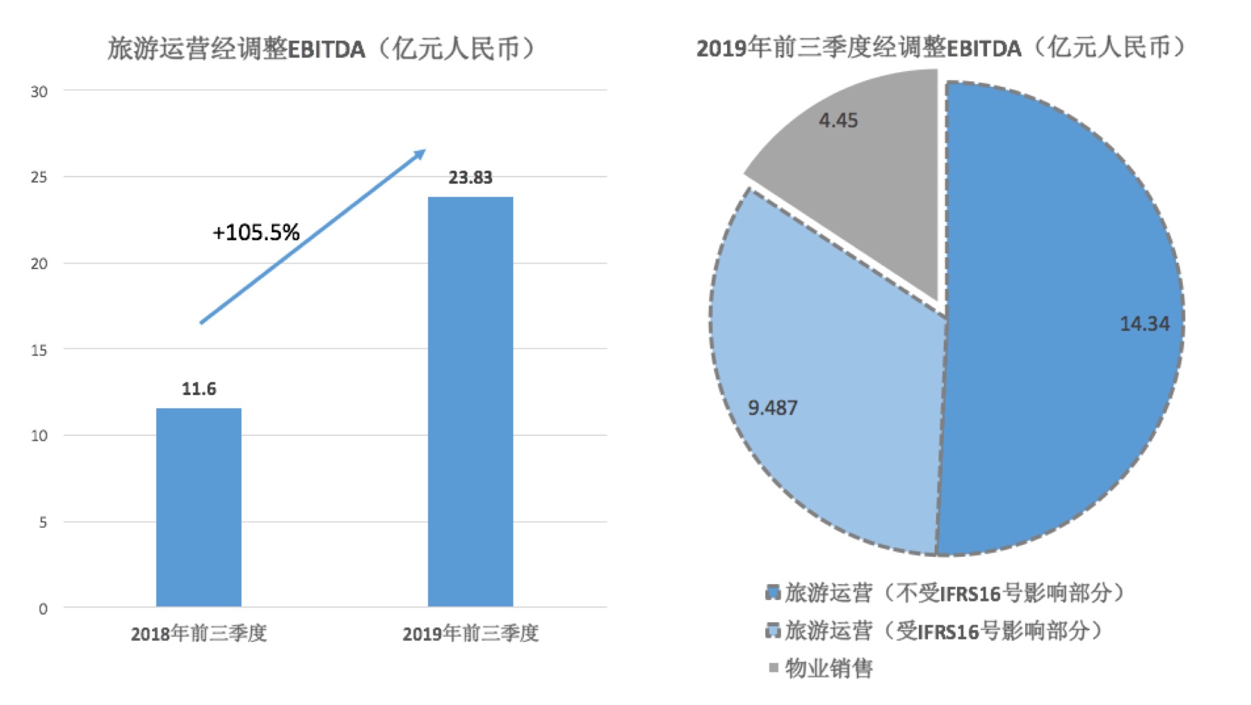 一、2019年前三季度旅游运营表现强劲,经调整EBITDA增105.5%至23.83亿​
