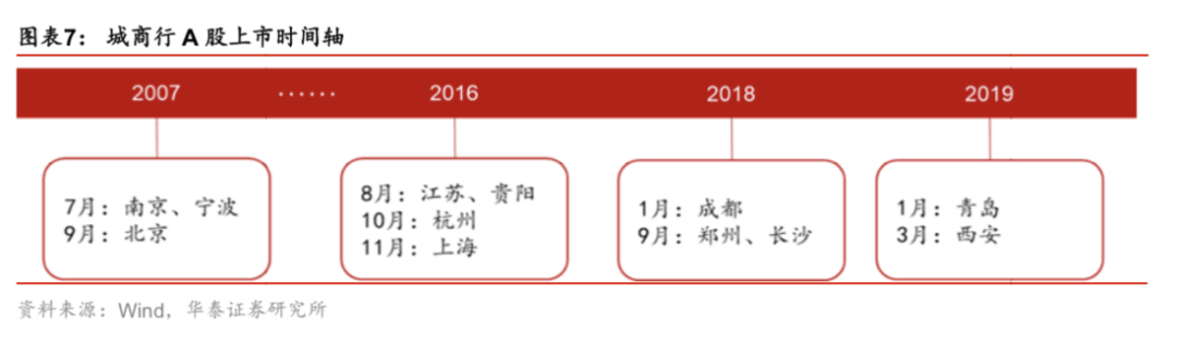 部分城商行通过IPO打开资本市场的大门。通过在公开资本市场发行股票,城商行可以补充自身的核心资本,增强资本充足率以符合监管要求和满足经营需求;各地政府也鼓励支持当地城商行加快上市,以支持当地经济发展。目前,134家城商行中已有25家银行实现了上市目标,其中有11家城商行仅在A股上市,按总资产规模排序分别为北京银行、上海银行、江苏银行、南京银行、宁波银行、杭州银行、贵阳银行、成都银行、西安银行、长沙银行和苏州银行;12家城商行仅在港股上市,按规模排序分别为盛京银行、徽商银行、锦州银行、天津银行、哈尔滨银行、中原银行、重庆银行、甘肃银行、江西银行、九江银行、晋商银行、泸州银行;郑州银行和青岛银行实现A+H股上市。由于在主板上市难度大、审核时间长,齐鲁银行通过在新三板挂牌对接资本市场。