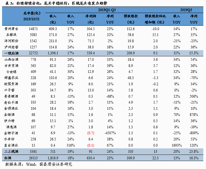 2.1.白酒:继续分化,龙头稳定,区域龙头弹性大