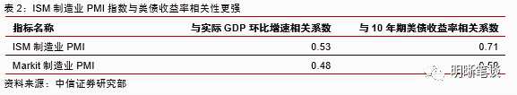 ISM与Markit走势背离哪个更值得参考:我们认为ISM指数和Markit指数出现分歧的主要原因在于统计口径与分项权重占比的区别。从两种PMI指标的走势上来看,我们认为ISM制造业PMI指数更为敏感且更具前瞻性,从与美国经济以及债券收益率的相关性来看,ISM指数的参考意义更强。
