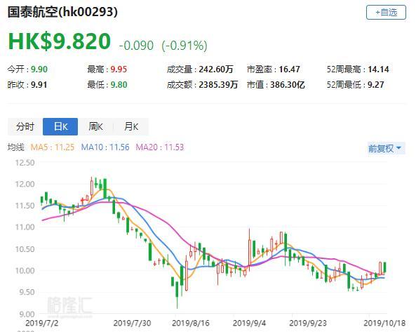 交银国际发布报告称,国泰航空(00293.HK)最好的情况是2020年初需求逐步恢复,公司正进行短期运力削减,在未来几个月降低低利润航线的频次,但由于前景仍然存在高度不确定,暂时维持其“中性”评级,目标价11.11港元。