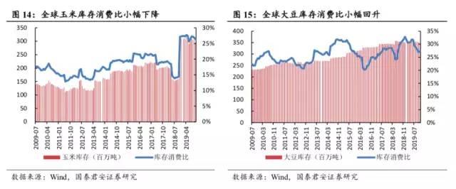 大豆方面,根据USDA11月最新预测,预测全球大豆消费量34960万吨,较上月小幅下跌;同时,预测19年大豆产量33656万吨,预测全球大豆库存上升21万吨至9542万吨,全球大豆压榨量为30271万吨,库存消费比上升至27.29%。