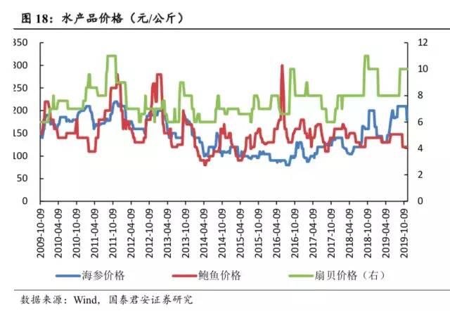 上周海参价格维持在180元/kg,扇贝价格维持在10元/kg,鲍鱼价格维持在120元/kg。