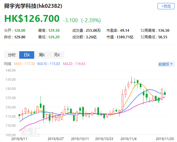 不过,该行上调舜宇2019及2020年销售预测10%及17%,盈利预测上调11%及4%,以反映第三季表现强劲及10月出货量,目标价因而由110港元上调至125港元。