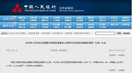 11月20日中国人民银行授权全国银行间同业拆借中心披露第三期贷款市场报价利率(LPR)。