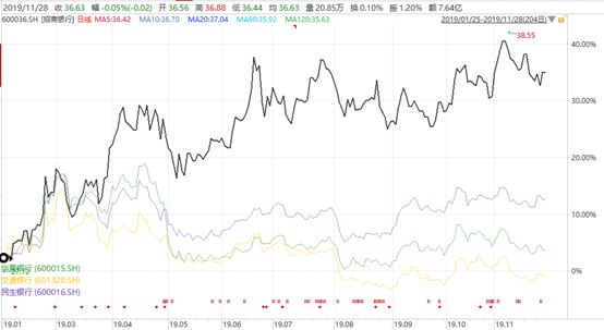 招商银行不管是年中报、还是最新披露的三季报,业绩表现 “亮眼”,让投资者们趋之如骛。据Wind统计,招商银行今年以来股价上涨超过50%,其表现远远超过国有5大行的表现以及行业平均涨幅。