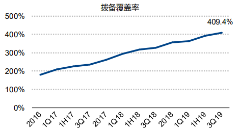 据历年来财报披露,招商银行拨备覆盖率三季度末高达409.4%,远远超过监管规定的120-150%的要求,也超过四大行的拨备率水平。这亦是招行PB要高于四大行的原因。