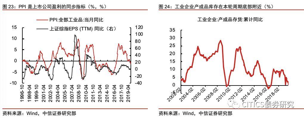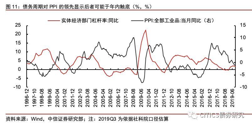 PPI大概率于今年内见底,但明年上限较低。基于前述的债务周期视角,历史上短债务周期底部领先于PPI底部2~4个季度,背后是信用扩张对经济总需求的传导时滞。本轮短债务周期于2019年一季度开始启动,从时滞的角度来看,PPI于今年内见底的可能性很大。从去年基数观察,10月PPI可能达到最低点后有望小幅回升。