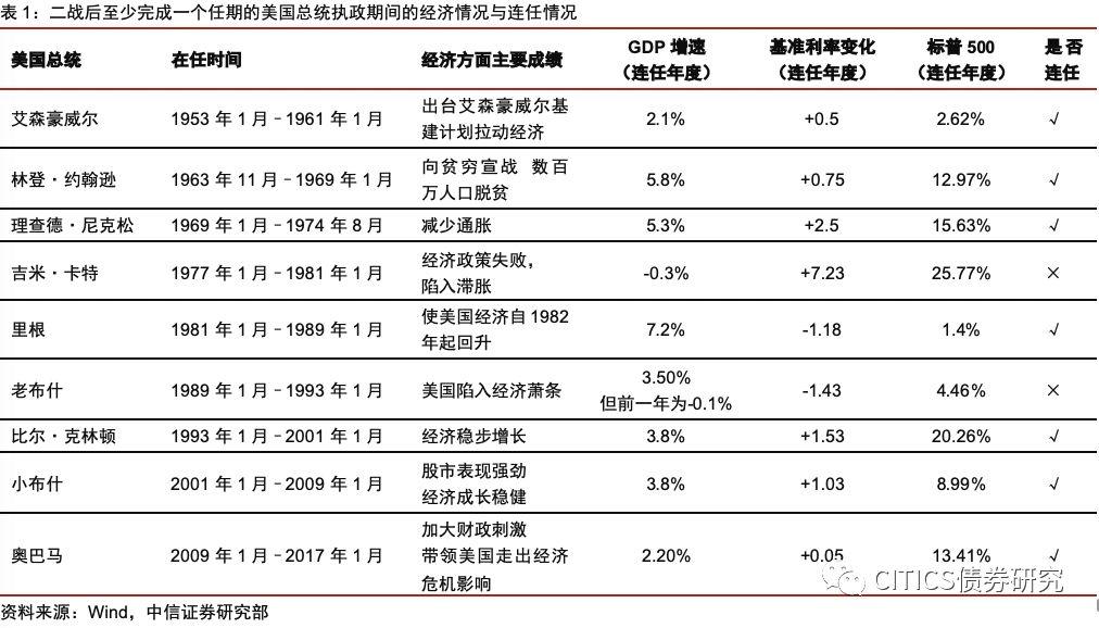美国大选,经济为重。美国大选将是影响明年市场的一个关键变量,从历史来看,连任大选结果与经济表现高度相关,未成功连任的总统在经济方面表现均不如人意,且在争取连任的大选年关键时间点经历过明显的经济衰退。二战以来至少在职一个完整任期的美国总统有两位连任失败,在吉米·卡特和老布什争取连任的大选年度,GDP增速都曾经历过剧烈下跌。第一个任期和大选年度的经济情况虽不是影响连任的唯一因素,但也是重要影响因素,特朗普为了争取连任很可能会进一步向美联储施压,由于降息对经济刺激的效果有滞后性,所以这种压力可能在明年上半年更为显著。