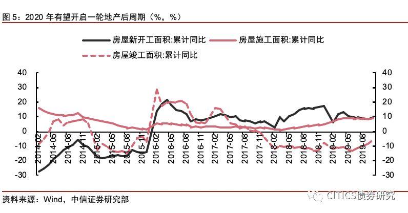 新一轮地产后周期有望开启。2017年以来房屋新开工与竣工面积累计同比增速出现长期背离,源自去杠杆压力推动房地产开发企业加快销售和资金周转,在加速预售回款的同时也在拖长施工进程以延缓工程款支付。但是推迟交房难以长期持续,2019年下半年房屋竣工面积累计同比增速已经出现触底反弹迹象,从单月数据观察,8月以后竣工面积同比已经转正。由于房屋竣工面积同比负增长已持续两年以上,所以本轮竣工面积同比增速的反弹可能也将持续较长时间,表明一轮新的地产后周期有望开启。