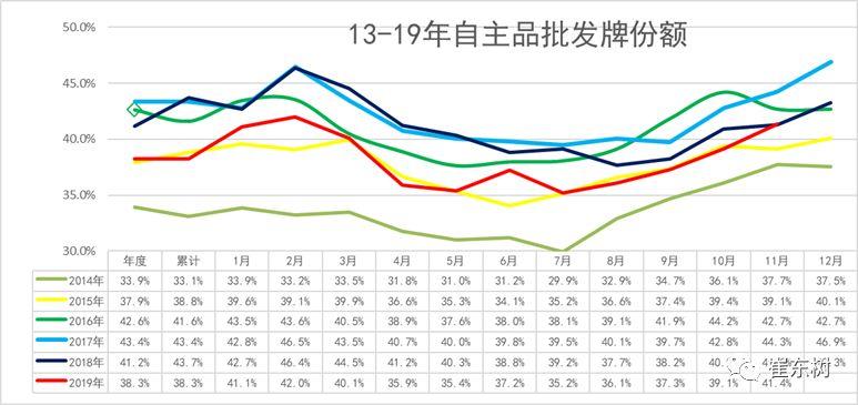 2009年11月份自主品牌份额41%,较16年、17年的份额下降,增长压力较大。但19年11月的自主份额好于18年。