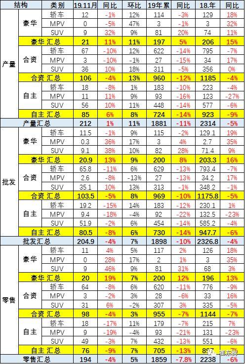 豪华车的零售表现最强。自主品牌的生产批发零售均处于较低水平。