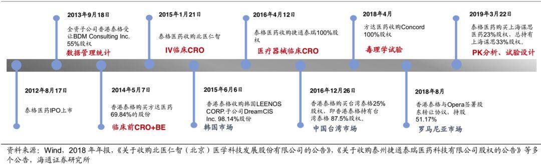 同时公司开始涉足临床前 CRO 领域,通过对方达医药、泰州康利华等公司的收购,获得生物分析、 CMC 等临床前 CRO 业务,其中方达医药具有国内领先的生物样本分析技术,具备熟练地专业人员并配备了最先进的设备,可为客户提供高质量的全方位服务。