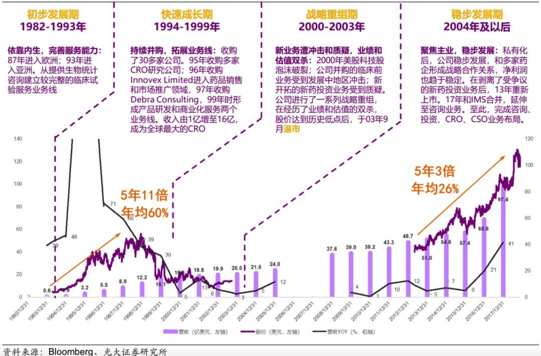 昆泰、科文斯、PPD、 Paraxel、ICON 先后在 1995-1998 年上市,在行业高景气度背景下,业绩保持快速增长,同时也给投资者创造了丰厚的回报。