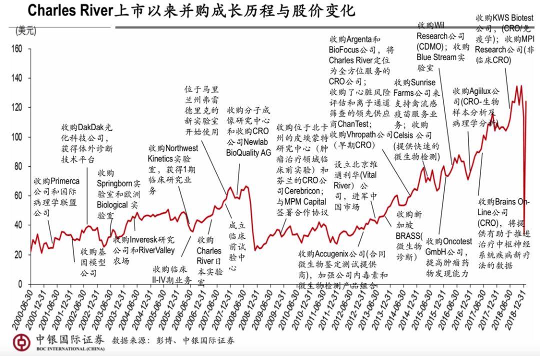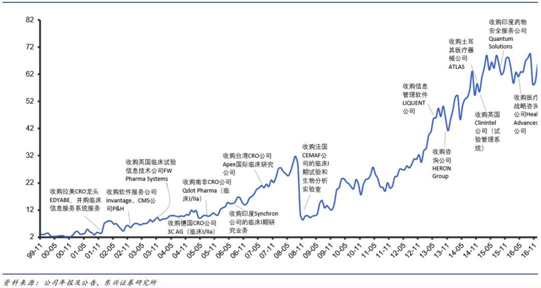 2000年6月上市后,在奠定了以安全性评价为核心业务的基础上,在CRO产业链横向和纵向并购了28家公司,强化自身业务的同时向美国以外地区扩展业务,并对CRO细分领域有了更广泛的覆盖。