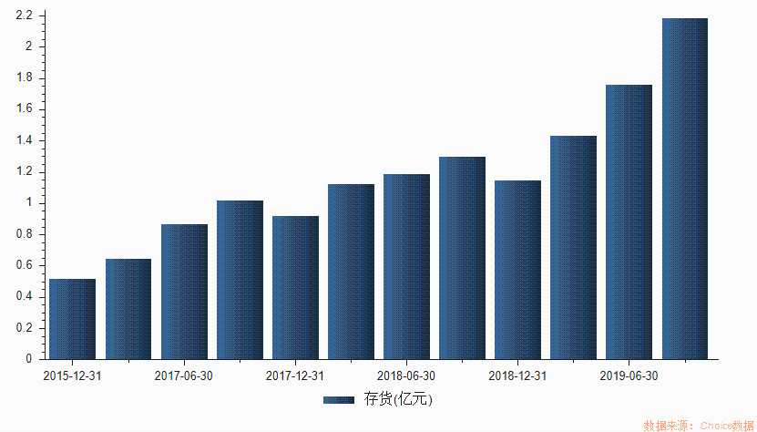 公司的存货从2015年底的0.51亿上升至2019年Q3的2.185亿,复合增长率为43.8%。