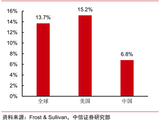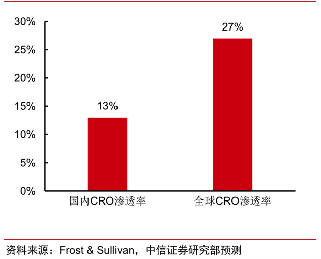图六:国内CRO行业渗透率VS全球CRO行业渗透率