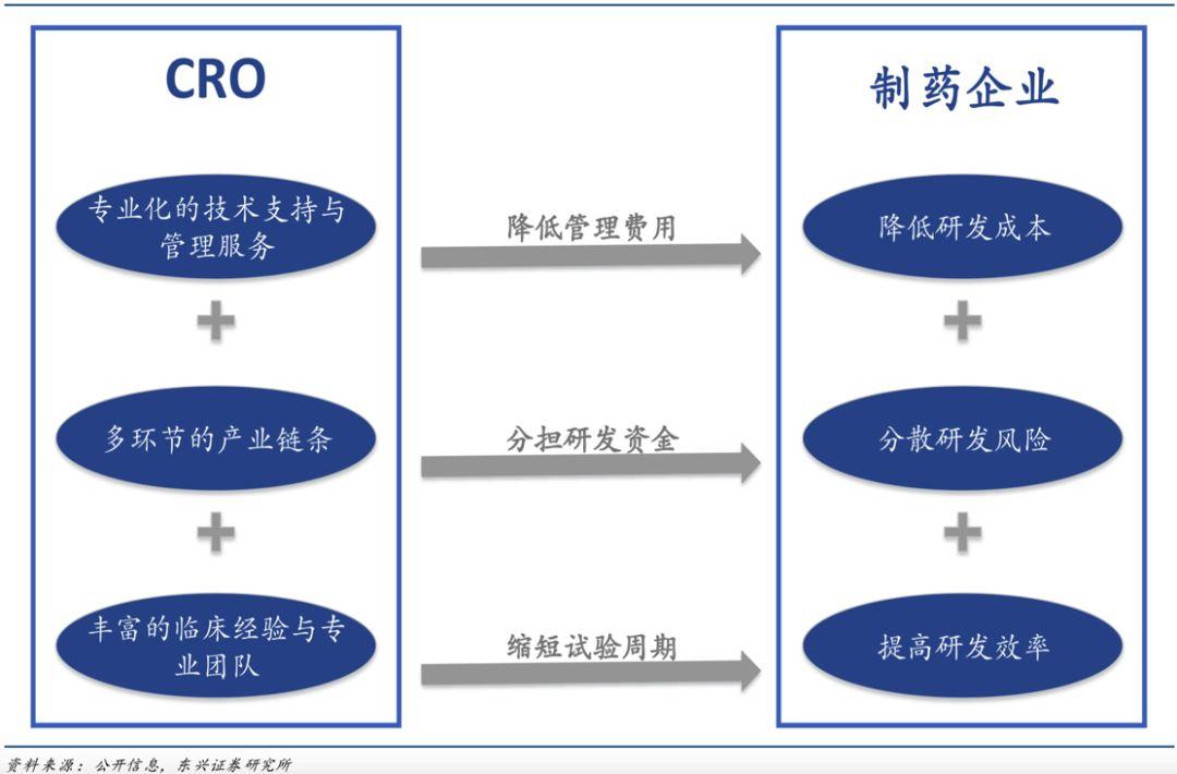 随着药企研发投入的不断增加,药企对研发的成本、风险以及效率也更加看重,在这样的环境下越来越多的药企选择和CRO合作。