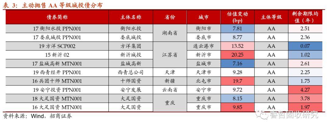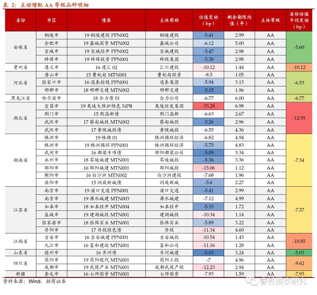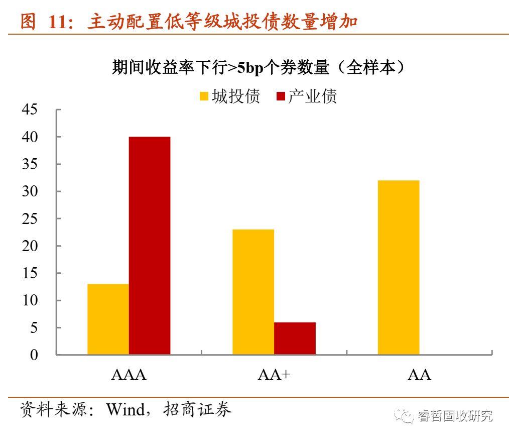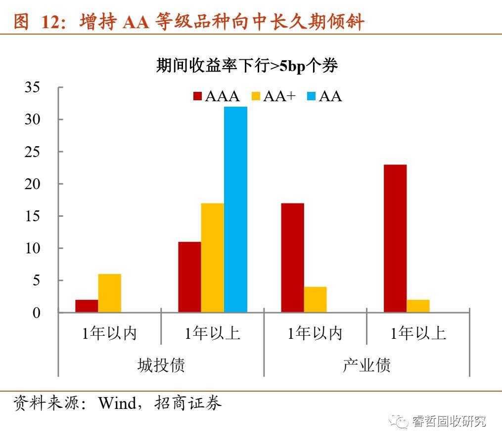 一方面,主动配置长久期AA等级城投债并不少见定义本周收益率下行超5bp(超过平均水平)的活跃个券,用以刻画机构增配行为。其中,主动增持AAA等级品种均集中在产业债,行业分布在综合、交运等短融大户。而AA等级配置中,全数向城投债倾斜。