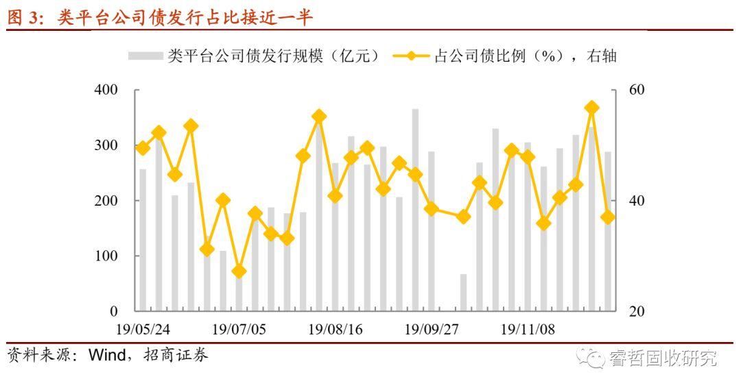 事实上,此前的报告中,我们对此有过诸多讨论,公司债净融资主要得益于交易所松绑借新偿旧规定,允许类平台公司债滚动。下半年以来,类平台公司债发行规模占公司债全体规模55%左右。由于到期与发行之间有一定的时间差,进而导致公司债净融资维持在较高水平。