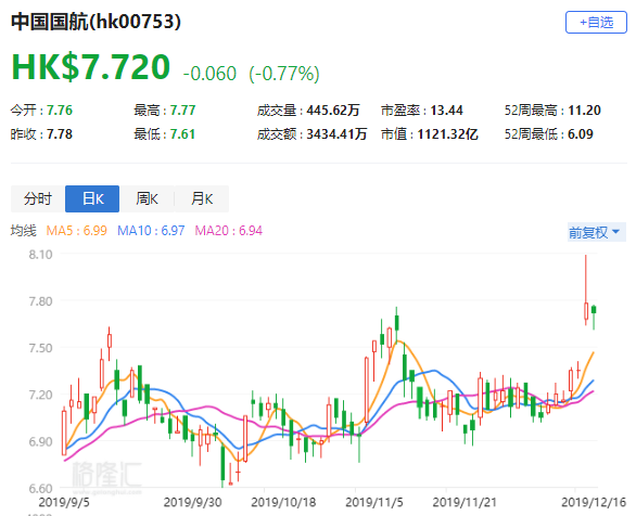 中金发表研究报告表示,当前航空股估值低于历史平均水平,预计未来几个月经营数据将向好,叠加票价市场化改革持续推进,以及2020年油汇风险趋缓,或将共同催化股价上行。该行认为,航空股估值已具备吸引力,重申对所有覆盖的航空公司“跑赢行业”的评级,国有航空首推中国国航(00753.HK),民营航空推荐吉祥航空和春秋航空。