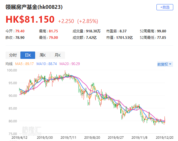 花旗:予領展(0823.HK)“買入”評級 目標價102.3港元