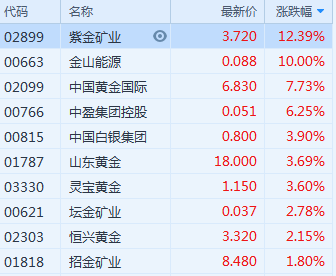 今日,港股黄金股普涨,其中,紫金矿业(2899.HK)12.39%领涨,金山能源(0663.HK)中国黄金国际(2099.HK)、山东黄金1787.HK、招金矿业1818.HK等有所拉升值得注意的是,金价连续第四个交易日上涨,突破1500美元/盎司,并有望收获2010年以来最大年涨幅。BMO Capital Markets金属衍生品交易主管TaiWong表示,在美股上涨、美国国债收益率反弹和美元坚挺的情况下,金价突破1500美元/盎司这一情况让人觉得多头会在新年买进,因此市场试图提前建仓kitco分析师Jim Wyckoff认为,在2020年全球经济增速增长的预期下,黄金多头将重点放在明年市场对贵金属的需求上。