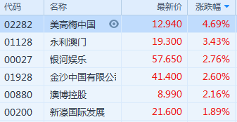 濠赌股集体走强 美高梅中国涨近5%领板块