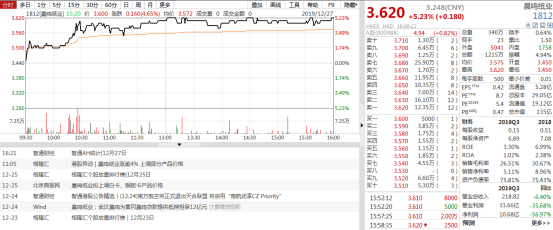 今日,晨鸣纸业(1812.HK)延续近期强势,盘中4.36%,创7月初以来新高,最终涨幅扩大至5.23%,收于3.62港元值得注意的是,12月25日该公司称,自当天起,白卡、铜板卡产品价格均上调200元/吨。与此同时,随着新项目的投产,公司基本实现木浆的自给自足,成本端优势显现,待未来纸浆价格回暖之后,公司毛利水平将进一步体现此外,近半年内,6家券商给予增持建议1家券商给予中性建议3家券商给予买入建议。