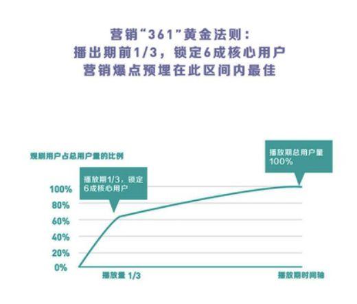 通过对电视剧播出期的观察,腾讯视频还得出了一个营销“361”黄金法则,即电视剧在播出1/3时,基本六成用户已被锁定,所以平台方就需要在这之前埋下至少一个营销爆点。