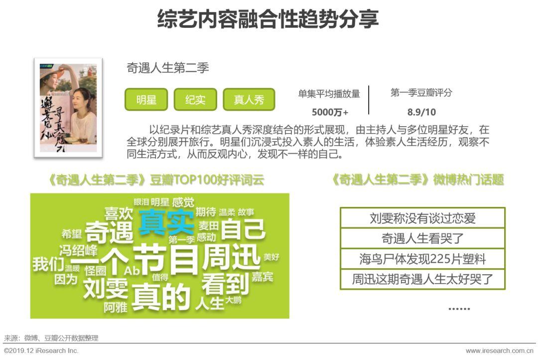 2019年至今,艾瑞自有节目库中符合上述定义的新“生活探索类”节目共157部,其中综艺频道下92部,纪录片频道下65部,综艺对于形式创新和内容融合的探索更加前沿。