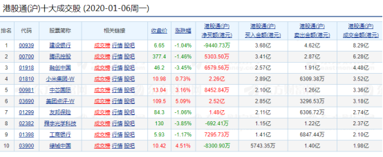 龙虎榜数据显示,今日港股通(沪)前十大成交个股是建设银行、腾讯控股、融创中国、小米集团、中芯国际、美团点评、友邦保险、舜宇光学科技、工商银行、绿城中国其中净流入最多的个股是美团点评,净流入2.52亿港元;净流出最多的个股是建设银行,净流出9440.73万港元。